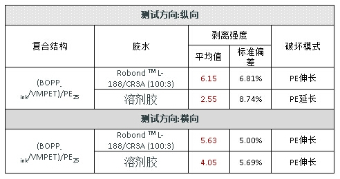 丙烯酸樹脂的特性,決定了粘合劑和鍍鋁層間有著良好的復合強度,水性粘合劑高的分子預聚合度和柔性分子鏈設計,進一步避免鍍鋁層發生轉移而導致復合強度不合格的問題。