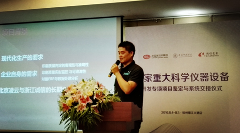 八月蘇杭,人間天堂。2016年8月4日-5日,由凌云光技術(shù)集團(tuán)有限責(zé)任公司(以下簡稱“凌云”)、北京印刷學(xué)院及浙江誠信包裝材料有限公司(以下簡稱“浙江誠信”)聯(lián)合舉辦的“國家重大科學(xué)儀器設(shè)備開發(fā)專項項目鑒定與系統(tǒng)交接儀式”在浙江省杭州市完美收官。中國印刷及設(shè)備器材工業(yè)協(xié)會副理事長王立建先生,北京市工業(yè)專家顧問、中國印刷及設(shè)備器材工業(yè)協(xié)會顧問、中國印刷業(yè)資深專家譚俊嶠譚老,中國塑料加工協(xié)會復(fù)合膜制品專業(yè)委員會理事長夏嘉良先生,北京印刷學(xué)院副校長許文才先生,中國印刷技術(shù)協(xié)會凹版印刷分會顧問、軟包裝行業(yè)專家陳志雄先生,浙江誠信包裝材料有限公司董事長宗宇后先生,凌云光技術(shù)集團(tuán)總裁姚毅博士,凌云光技術(shù)集團(tuán)首席技術(shù)總監(jiān)趙嚴(yán)博士及多位行業(yè)領(lǐng)導(dǎo)、資深行業(yè)專家出席了此次盛會。