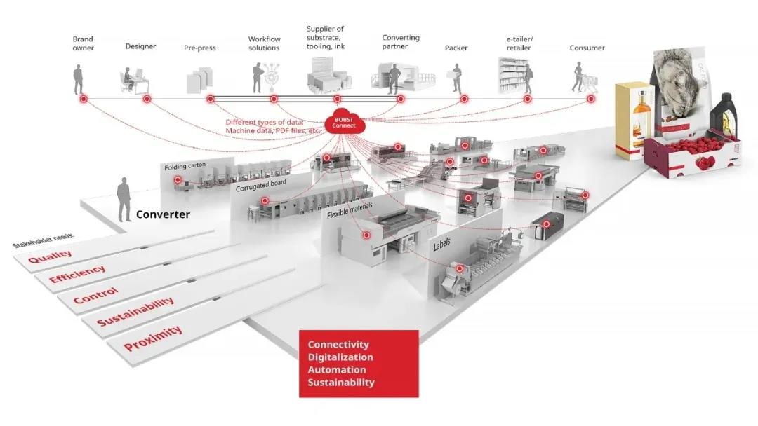 博斯特的愿景正在塑造一個新的現(xiàn)實,其中,連接性、數(shù)字化、自動化和可持續(xù)性是包裝生產(chǎn)的基石。博斯特將繼續(xù)提供一流的機器,而且現(xiàn)在正在添加更多智能化、軟件功能和基于云的平臺,以使包裝生產(chǎn)比以往更出色。